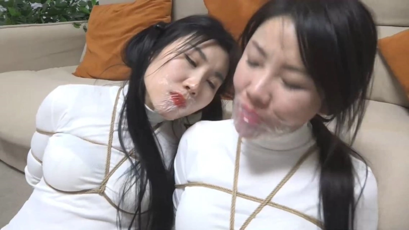 统一的制服,白丝油光丝袜和性感体操服,2位美女超级诱人,2个被直播贩卖的白丝女奴,虽然被绑成肉团但男人也给她们逃跑的一线生机,就在2个美女奋力求救的时候,一个陌生人闯入,结果陌生人没有打算救她们,反而玩弄起来。