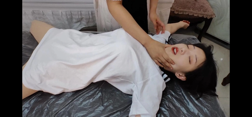 妹子被闺蜜迷晕后摆弄身体。涉及元素有昏迷、摆弄、丝袜、翻眼皮、足恋等。