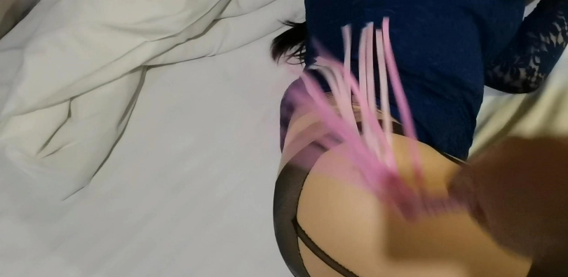 这几天阿月一直在酒店里面刷DY 看见里面的女主播穿的蓝色蕾丝一字肩超短裙 结果自己也十分心动 立马求我也给她买一件 好不容易货到了后 正好我新买的QQWJ也到了 既然我花了钱 那我索求一点回报不过分吧 于是我让阿月自己把自己捆起来 把玩JYJ 随后用皮鞭进行抽打她的丝袜大屁股 同时玩弄她诱人的双奶 结果阿月的兴致越来越高 从一开始的演习到后面真的发情 骚叫一声大过一声 最后主动用ZDB进行自我安慰 在拍摄结束之后 阿月还是很兴奋 那我只能提枪跃马 懂得都懂