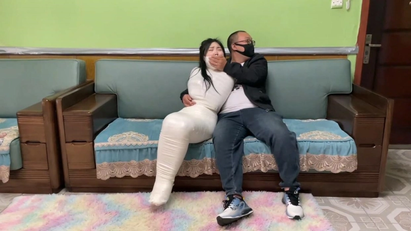 【逍遥】《过于谨慎的小偷 下》美女严密包裹木乃伊 使出浑身解数求救逃脱 每次即将逃脱都功亏一篑 美女挣扎全片卖力挣扎~