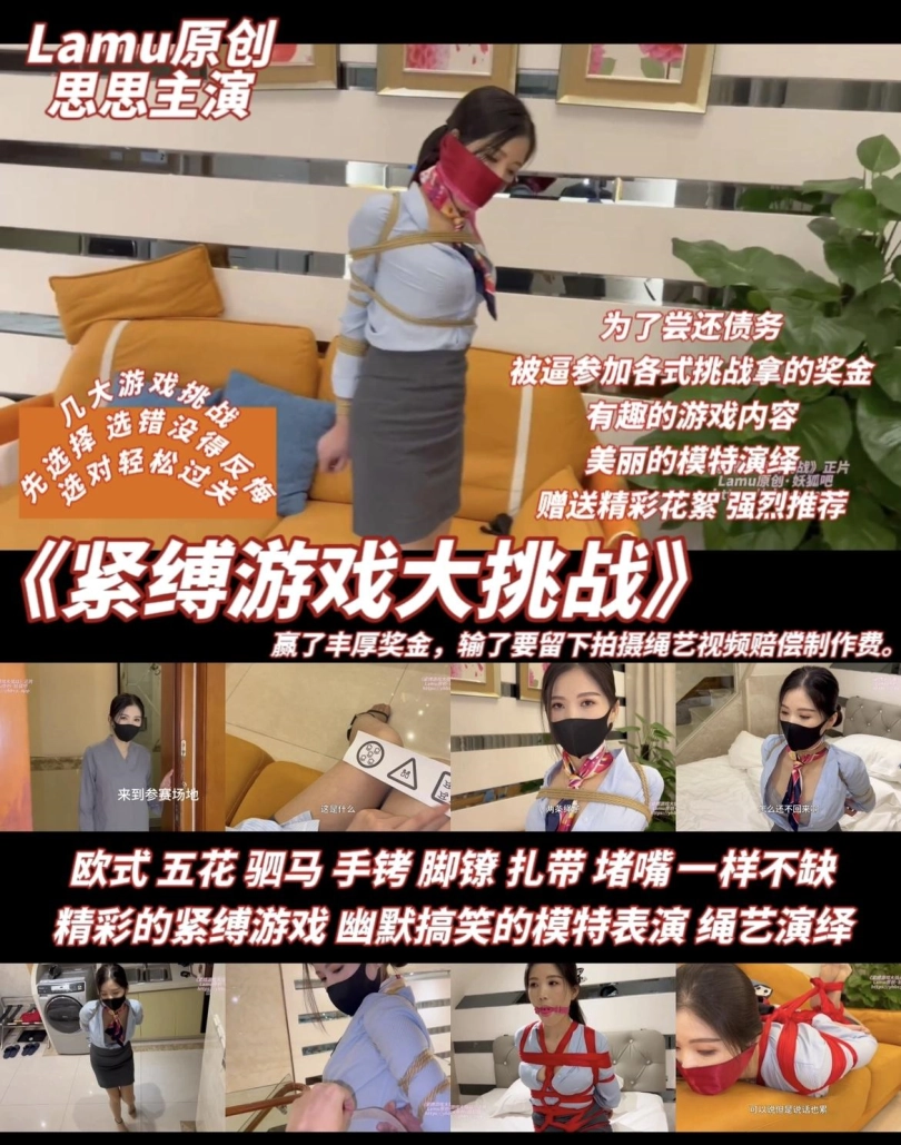 【Lamu】思思的紧缚游戏大挑战!先选择,再玩游戏,看看我们美女模特能否成功过关!