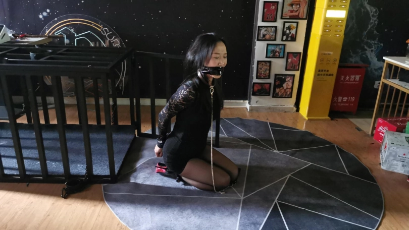 既有黑丝捆绑与驷马,也有笼子囚禁喂食(这是文清第一次尝试笼子囚禁),同时做了访谈,问了文清三个问题。1:这是第一次被绑在笼子里吗?有什么感受吗?