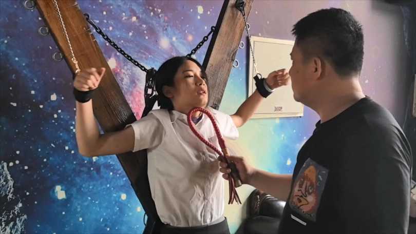 童谣是某银行职员,下班途中买饮料,不料意外发生,遭人暗算,带到某家俱乐部,供人享乐。童谣被紧缚架子牵引鞭打踩踏按摩笼子