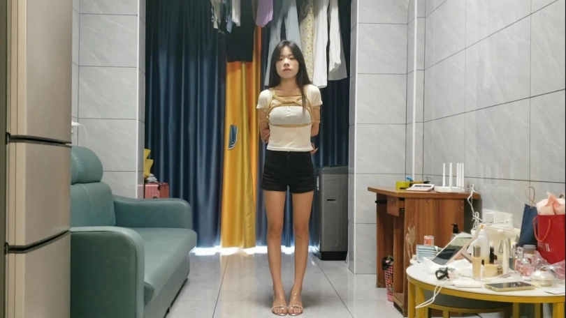 今天又把安琪日式驷马绑起来了,男朋友在旁边看着不知道会有什么反应,安琪这妹子耐性柔韧性还是挺不错的,戴上口球更加诱人了,但是在这个难受的姿势下,还能睡得着也是挺厉害的