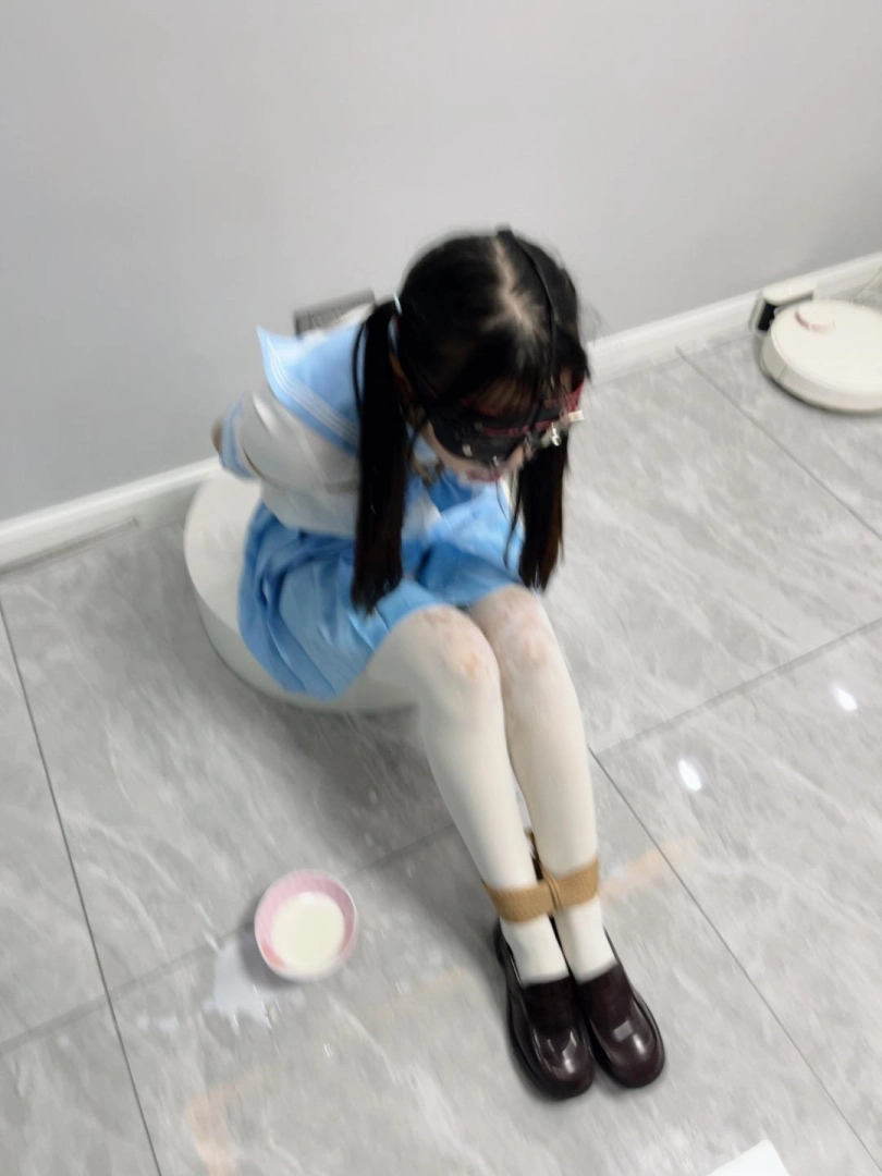 内容:首先给妹子戴上眼罩和羞耻的三向鼻钩、扩口器,鼻子一定要高高拉起到微微疼痛为止,然后把鼻钩固定在背后的绳子上强制抬头。鼻钩一戴上,妹子精致的小脸就被完全破坏了,变成了羞耻的奴隶。因为开口器的缘故,妹子无论怎样都无法控制口水的滴落,只能任由口水滴在心爱的jk裙子和白丝上。由于脚腕也被十几道绳子紧紧绑住,两条白丝小腿只能羞耻的互相磨蹭,可爱极了~