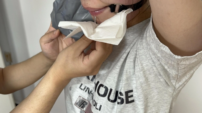 被封住口鼻以后,在呼吸很少的情况下,先进行指压板和SP的双重折磨,一段时间后可以看到这个过程的结果和人体的反应,在封住口鼻,进行下一轮挠痒加指压板。这又是另外一种折磨,到最后在用上快乐棒。达到[X_X]又是一种不一样的反应!