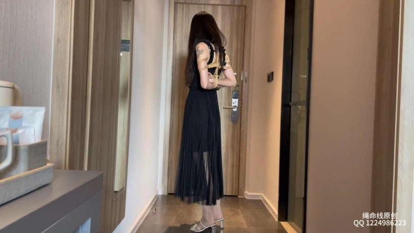 新模诗晴第一次体验捆绑,穿着黑色长裙过来,果断让她把肉丝穿上,然后给她来个开胃小菜,超紧五花绑脚放置挣扎。