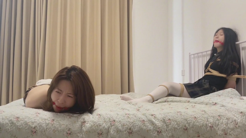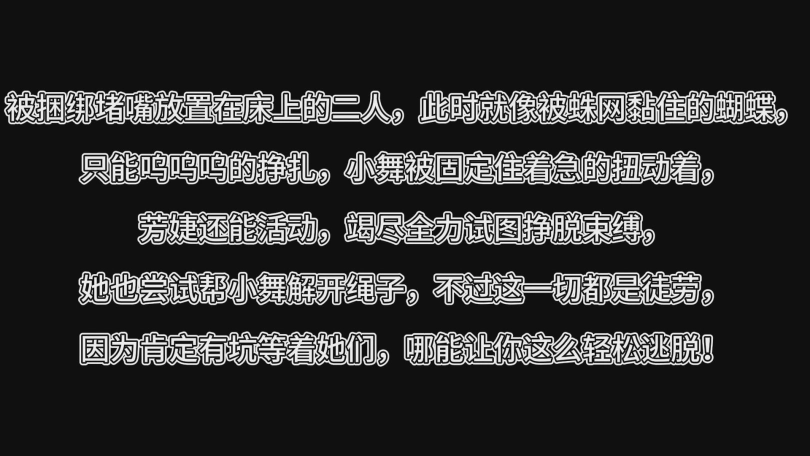 被捆绑堵嘴放置在床上的二人,此时就像被蛛网黏住的蝴蝶,