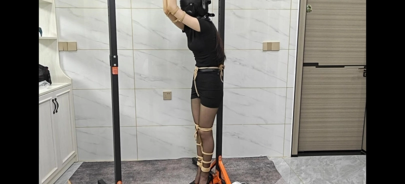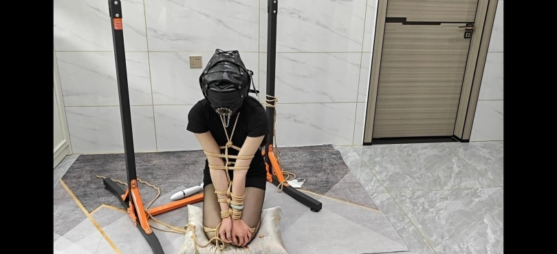 戴上全封闭头套,封闭视听并堵嘴,惨遭抚摸并用zdb调教。