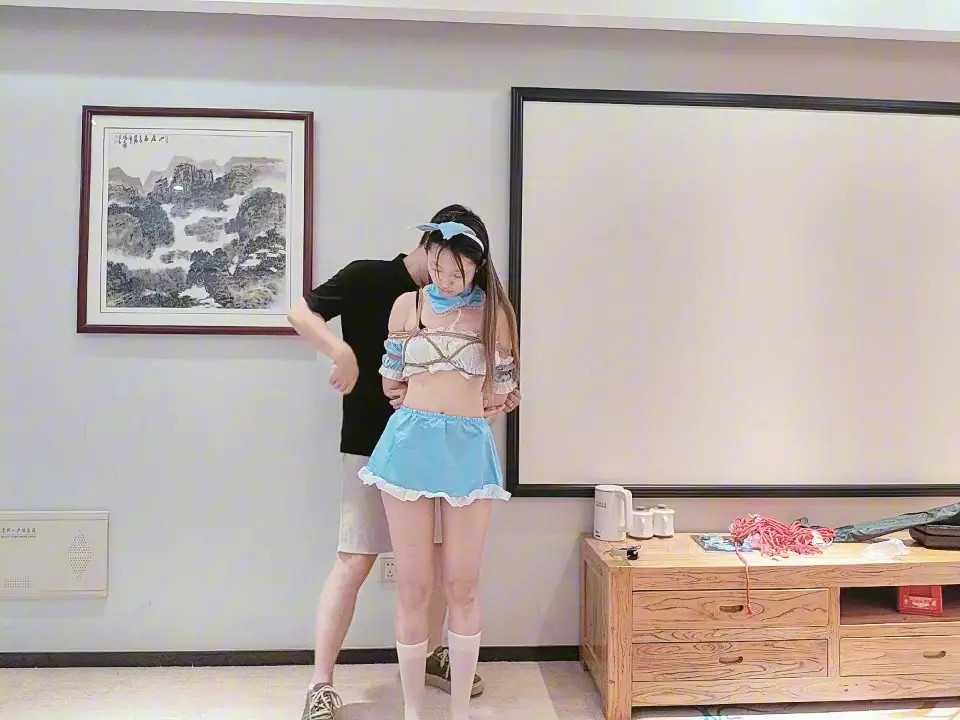 可爱的奴隶女友小钰,主动带上镣铐在家一边收拾屋子,一边等自己的男友主回家。主人到家后换上中华娘情趣衣,接受主人紧缚之后花样口舌侍奉主人