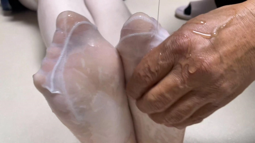 【逍遥】《双层白丝美女—油光丝袜02》粘液丝袜 双层白丝袜包裹 粘液系列最后一步 性感油滑美腿 大量特写