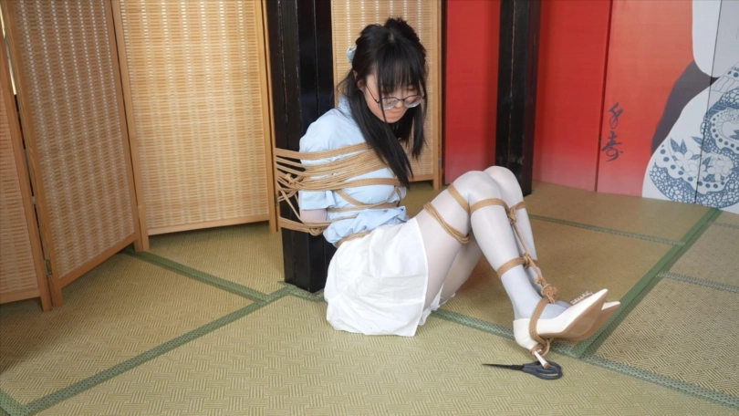 嗷嗷被绑在柱子上,需要把剪刀捡到自己身边