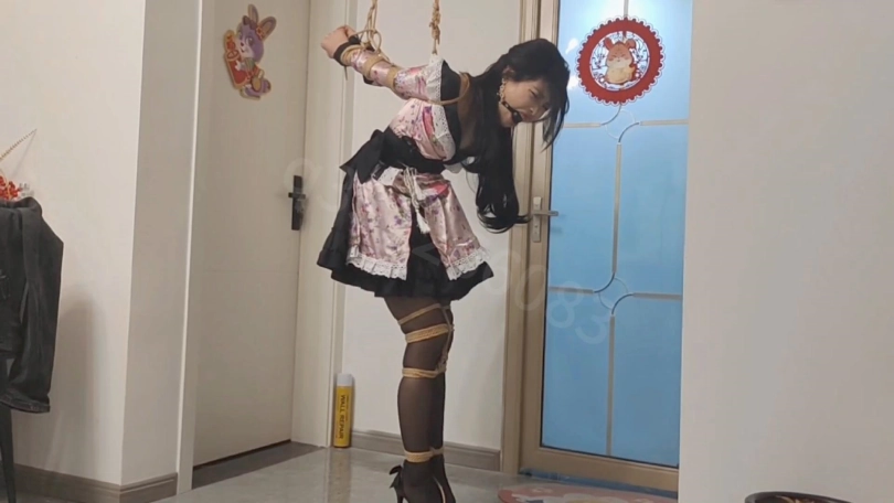 黑丝配和服,15厘米超高跟,极限欧式后手吊缚,塞满[X_X]蛋蛋,棒子固定,开始强高,失去平衡一直痛苦的转圈,有点惨,这个动作的后入是无法言语的,后手紧缚吊起的强制口舌也是绝绝子,细节过于暴力