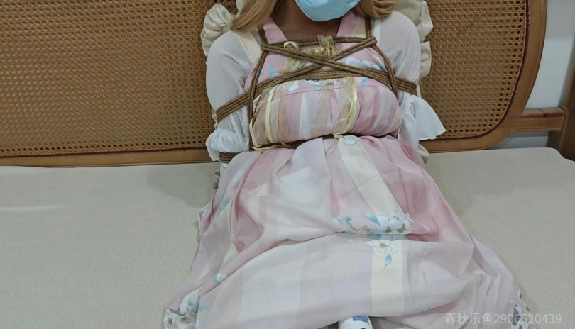 在沙发上绑好之后,M尿意来越强烈,刚想说话就被我堵住嘴蒙上眼戴上口罩。