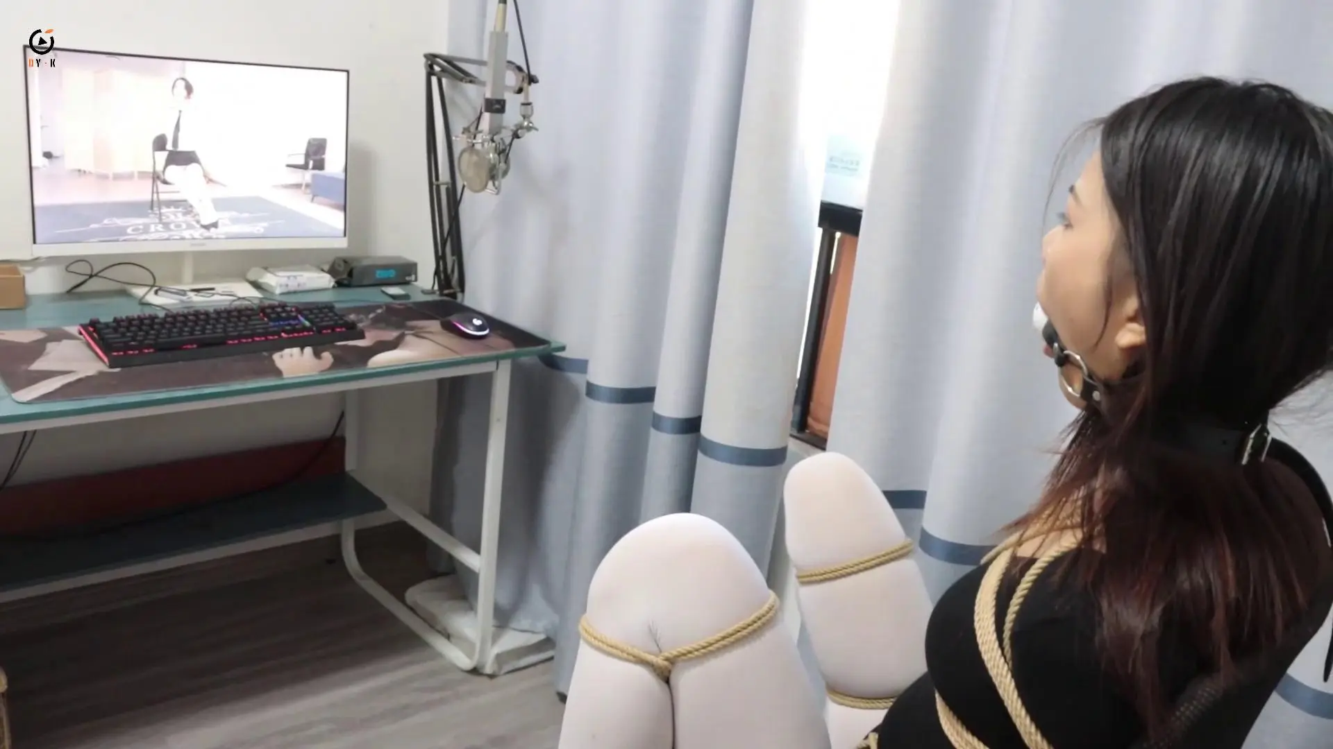 被小七套路输了以后雨晨被迫开始了监禁生活,每天都有固定的活动安排,进食时间(强迫舔食牛奶香蕉)、才艺时间(欧式直臂捆绑跳舞)、学习时间(强迫看各种绳艺片学习经验)、休息时间(密集捆绑封闭五窍睡觉),就这样被小七玩了几天以后,雨晨还天真的以为小七会放了自己,没想到小七拿来了一只大箱子。