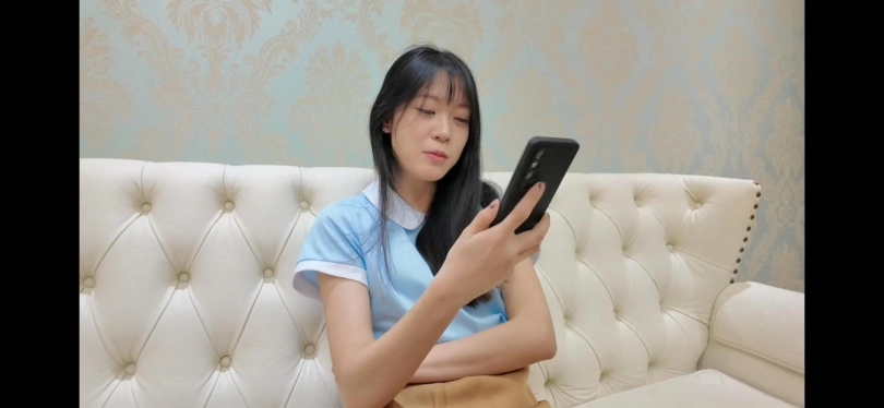 将小智说教了一通后,勇哥便离开了,留下小智独自一人挣扎。刚开始的时候小智在客厅的中间挣扎,挣扎了几分钟后,忽然听见沙发上响起了手机的声音(不用铃声,振动即可),小智激动的呜呜大叫,挣扎着挪到了沙发旁边,发现沙发上确实放着一个手机,但是放的很深。小智先是坐在沙发的旁边干着急了一阵儿,又躺在地上,将双脚放到沙发上去够。但是小智的脚上穿着光滑的丝袜,脚掌和脚趾在手机上蹭了半天都没有将手机从沙发上够下来。