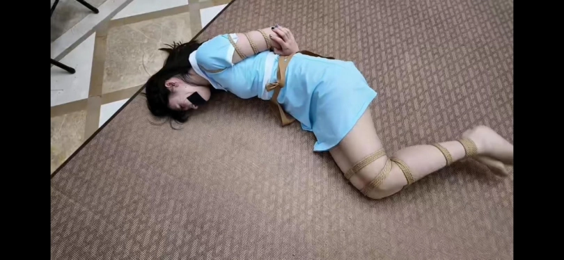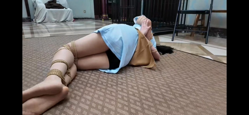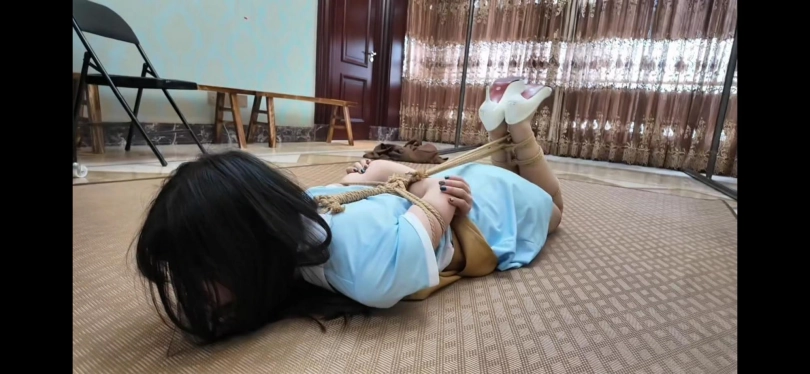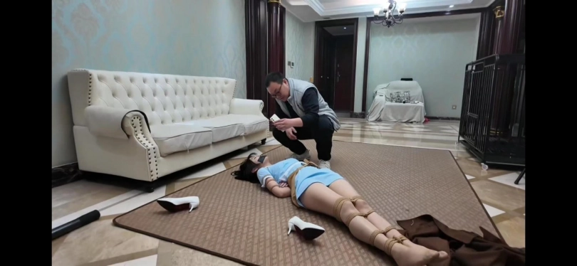 小智醒来的时候,发现自己已经被勇哥用绳子绑了起来(后手五花+并腿缚,没有堵嘴)。挣扎了几下后,发现勇哥正得意的坐在沙发上,小智要求勇哥放开她,勇哥却说刚才小智在电话里威胁她的时候提醒了她一件事情:小智是A甜品店的销售冠军,与其从小智这里高价引流,不如让小智直接消失。小智气愤的骂了她几句,勇哥就用胶布黏住了她的嘴巴。