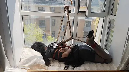 嘴里的棉袜自己穿过又臭又脏,被一条裤袜勒住嘴巴,低头会被直接顶到嗓子眼极其折磨。窗边,一个只能挣扎的黑色娃娃,用力的挣扎着却无济于事……