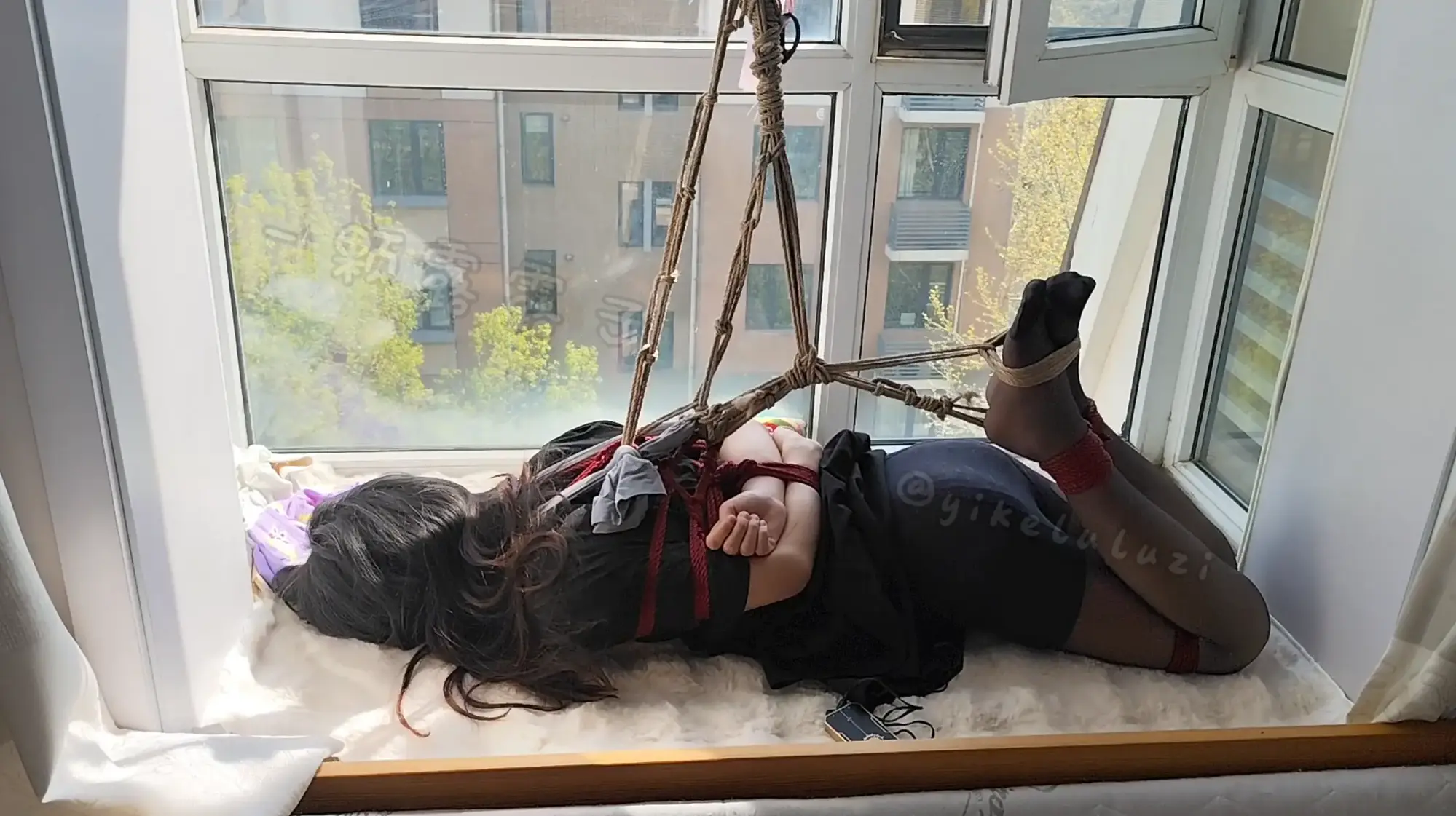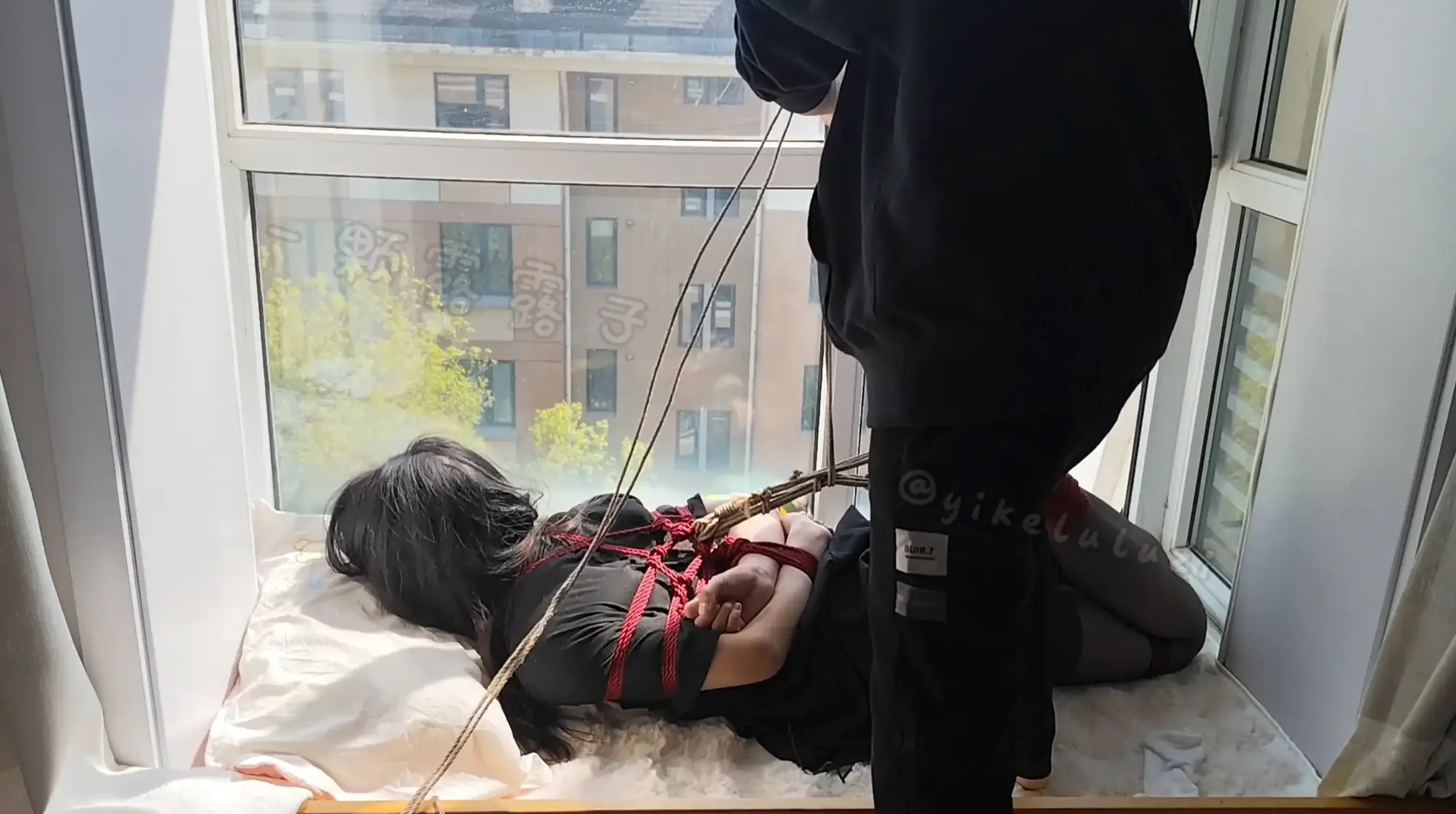 【一颗露露子】黑丝短裙脚玩游戏惩罚,棉袜堵嘴裤袜勒嘴吊环缚,窗边郊狼电击日式驷马捆绑放置地狱(下)