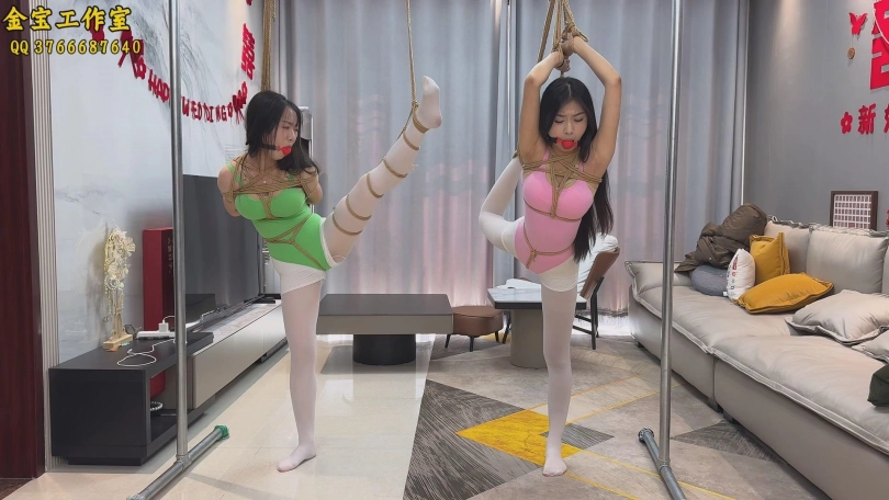 被绑架的两位美女接受了老板娘的折磨,被配同意跳艳舞来挣钱。本次首次拍摄捆绑性感舞蹈。