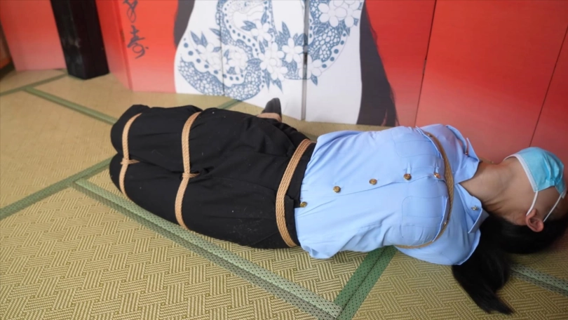 小0戴上镣铐展示,然后被直臂驷马挣扎