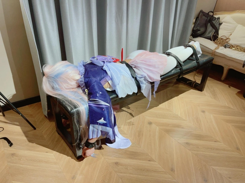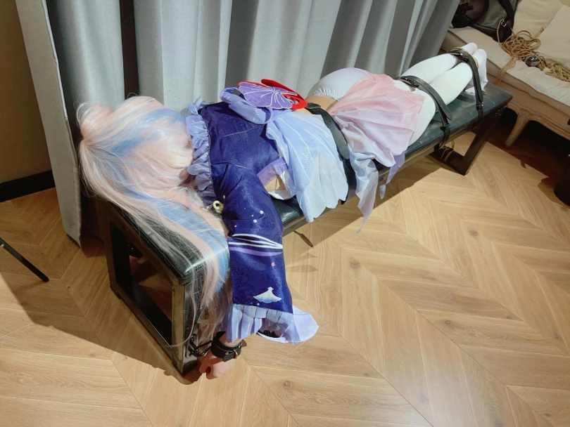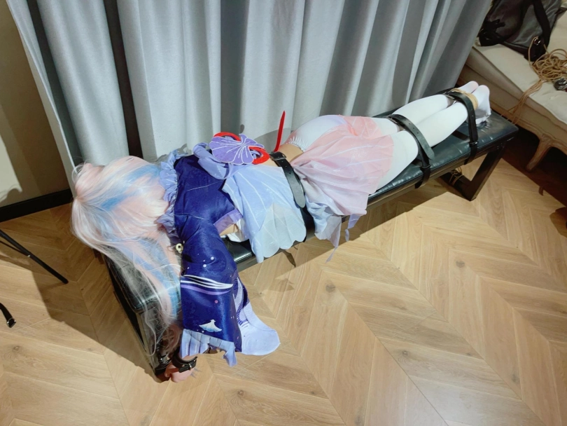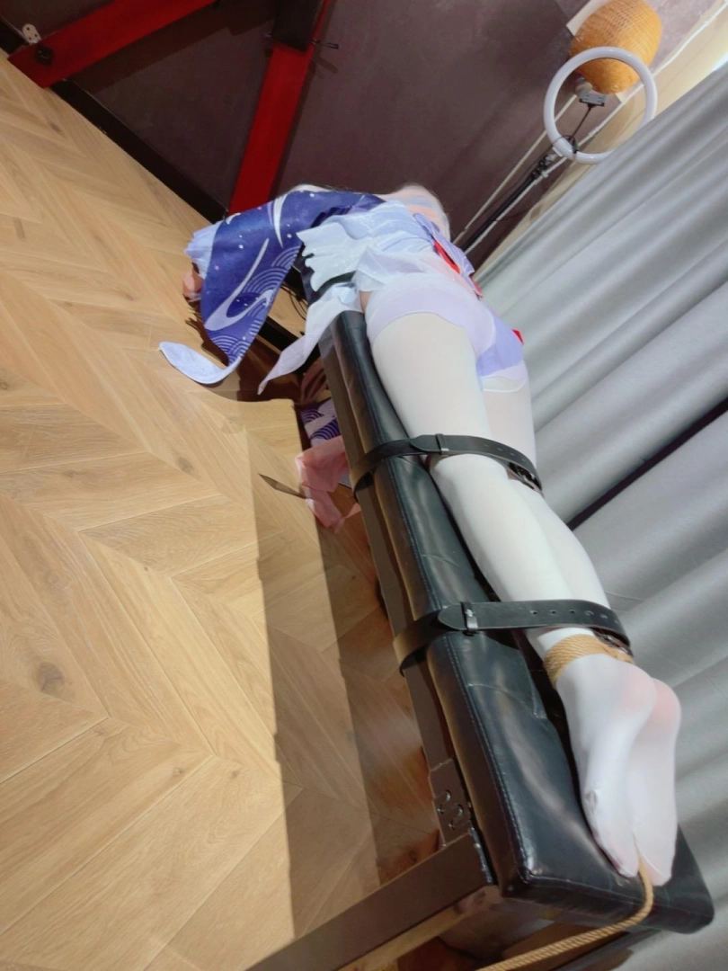 内容就不多解释了,趴在刑椅上,用皮带、绳子、手铐多重加固,然后狠狠TK白丝雪糕玉足!