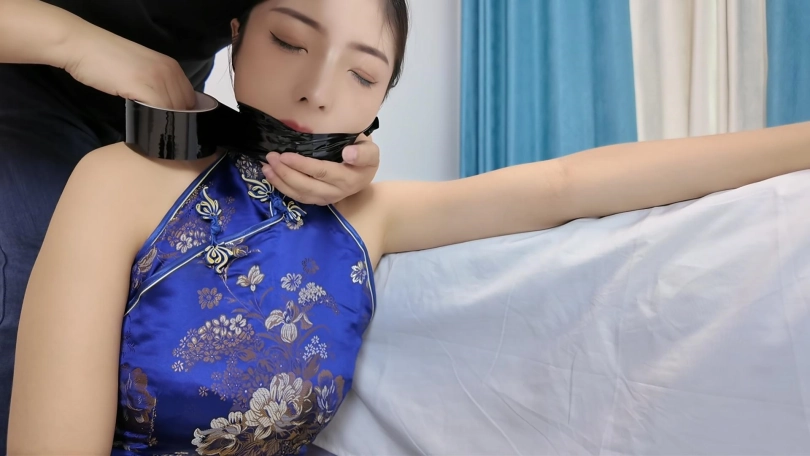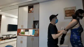 模特佳佳在家换上黑丝,蓝色旗袍准备出席一个活动,不料被早已藏在家中的歹徒袭击捂晕,捆绑到椅子上各种折磨,最后被捆绑关到衣柜里面,佳佳费力挣脱逃出去,又被歹徒抓回侵犯
