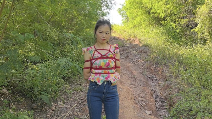 文文的户外体验还是挺刺激的,放了蛋蛋然后日式绑上,在山里走着,刚刚开机的时候她脸就红了,哈哈,就是口球带的太大的出去她戴不上,要不然更刺激了。