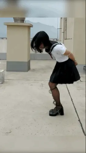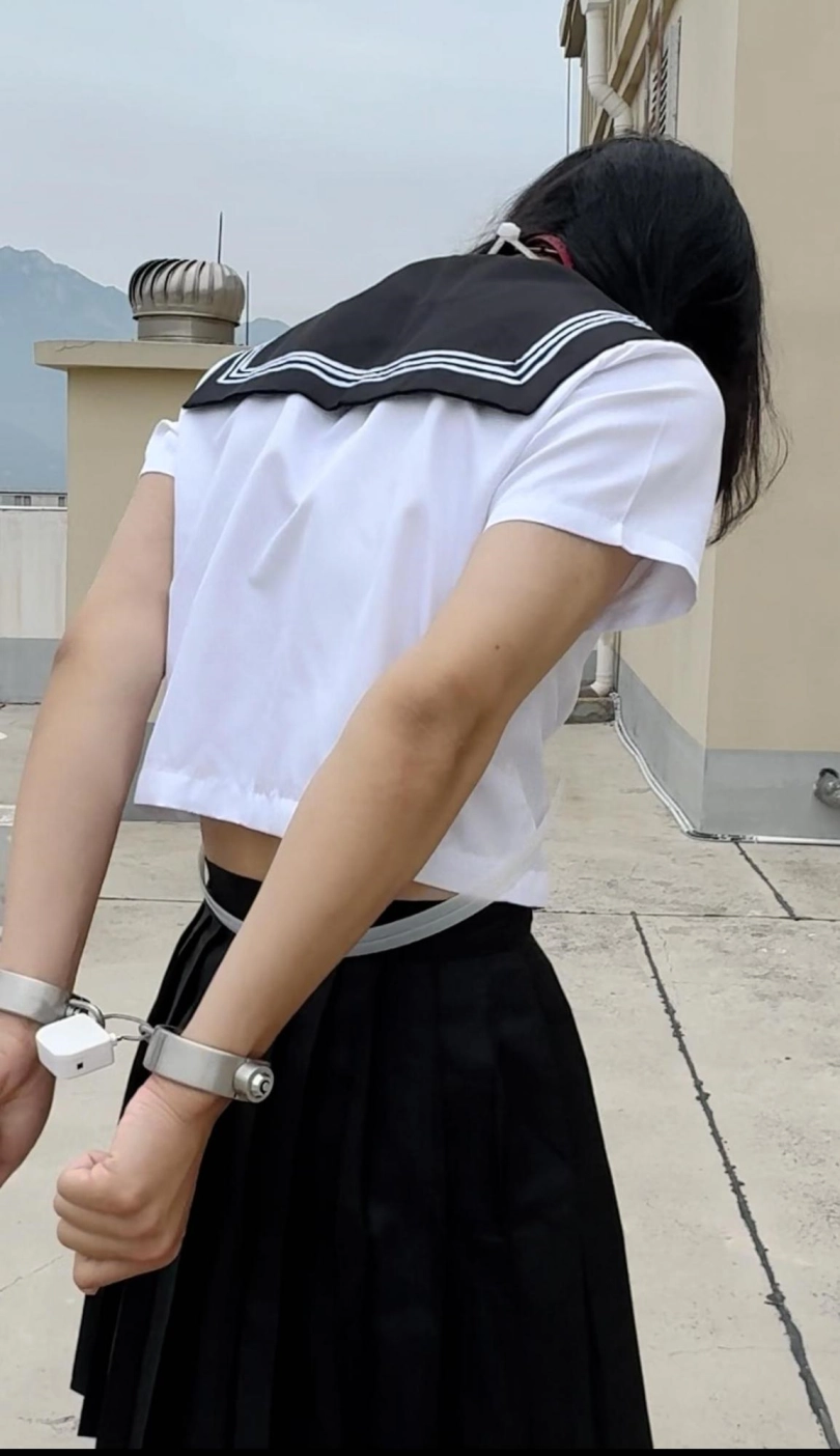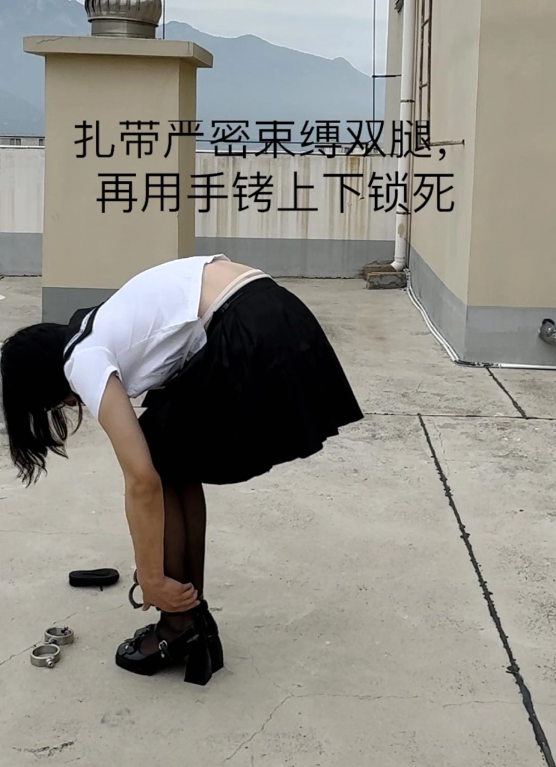 【柚里】天台手脚铐定时锁惊险自缚&脱白袜塞嘴毫无退路QAQ~摔倒腿都磕破了