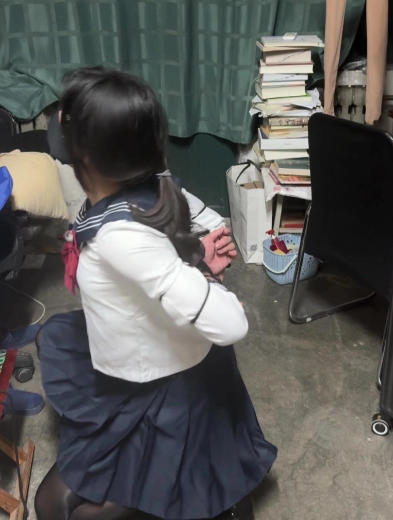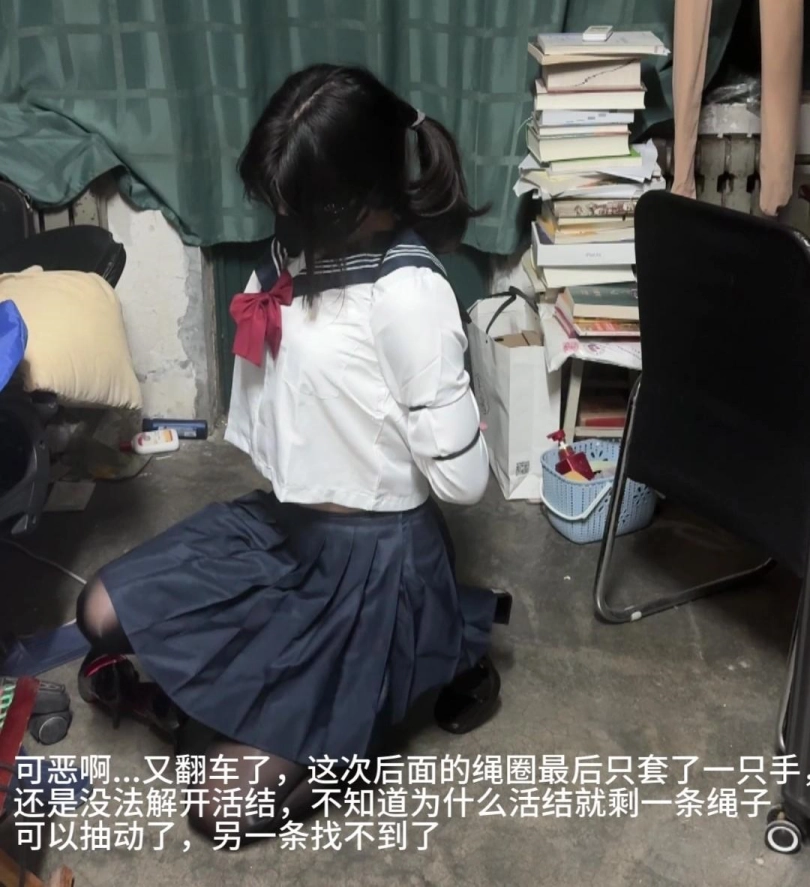 【柚里】五花自缚教学翻车,还好宿舍摸到小刀了不然真的绝望水手服+马油黑丝+侧空高跟