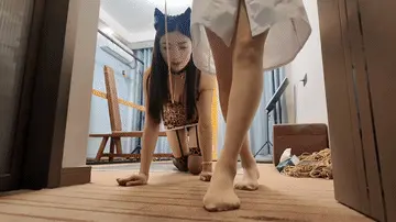 晓琴化身爱猫化学教授,佳佳是一个爱猫女孩,被晓琴注射药物,变成了一个宠物猫,一举一动训练,被训练的举手投足酷似一只可爱的小猫咪,喵喵直叫,投食,舔食,两个女孩的丝袜特写也非常多