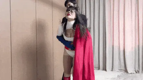 醒来时,她已被换上油亮黑丝、双手被捆、脖子套项圈吊起。敌人闻着换下的肉丝。女超人被狼牙棒连续狠砸,最后腿骨折断,项圈勒住脖子喘不过气,头无力垂下,彻底败北。