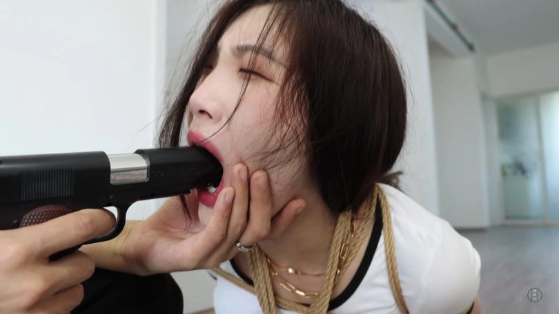 主演:安安。剧情介绍:安安是一名主播,以欺骗榜一大哥感情为乐趣。今天榜一大哥给她刷了个最贵的礼物,安安直播时一直讨好榜一大哥,可下播后榜一大哥约她见面却被拒绝,她还说到:这个臭屌丝,以为刷点礼物就能骗到我了?谁知不小心摁到了语音键,这句话发了过去还无法撤回。可安安却不当回事,说着:不就是刷了十万的屌丝嘛?我换个人继续骗。虽然起身休息。第二天安安穿了很清凉的服装要出门,不了被榜一大哥抓住,用毛巾捂晕,镜头一转,安安被桃缚捆绑在地上,大哥走来把她一记耳光拍醒,安安说到:你这是犯法的知道嘛?说完她就被榜一大哥踢翻在地上,接着榜一大哥踢她,安安求饶:别打了,再打出人命了。榜一大哥扶她坐起来,让她张大嘴巴,然后掏出一把枪戳到她的嘴里,然后说玩个游戏,把大哥都开心了,就放了她。安安点头呜呜呜表示同意。接着大哥拿来毛巾和内裤,先用毛巾塞满她的嘴巴,接着用两块黑胶布封上。接着大哥在安安身后,摸她的全身(胸,腰,腿),一边摸一边拉她的股绳,安安难受得呜呜呜叫,大哥还捂住她嘴巴,然后揉捏胸部。一会,大哥觉得安安嘴巴堵得不够,撕胶布掏出毛巾,然后又将白色内裤塞了进去,接着用银色胶带缠绕封上。封堵好嘴巴后,大哥将安安躺下靠在墙壁上,接着玩弄她(摸胸,肚子,大腿,打屁股,拉股绳)安安只能呜呜呜挣扎不了,全身只能动动脚腕。一会,大哥腻了,但还不想放过她,对她说:我要给你换个姿势,可是不能给你看到怎么绑的你,所以要把你眼镜封上,耳朵堵上。安安只能眼神惊恐和扭动脚腕,别的都无济于事,就这样被大哥黑胶带缠绕封住眼镜,堵上耳朵,在地上挣扎并呜呜呜。