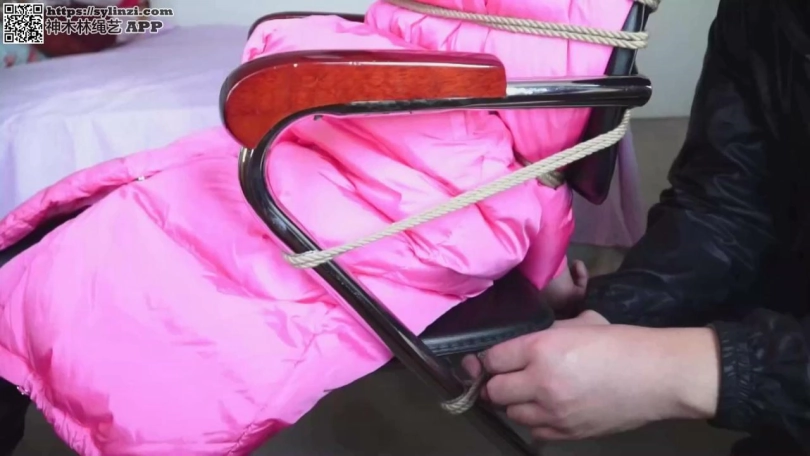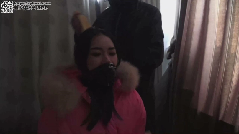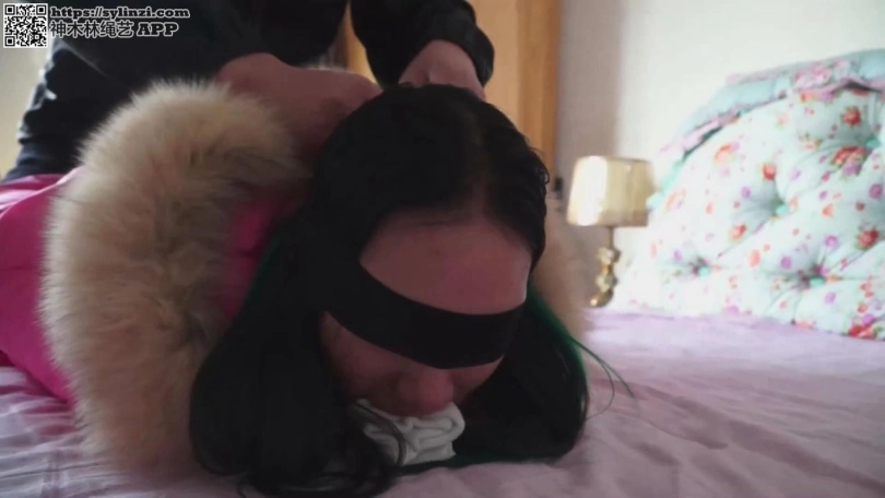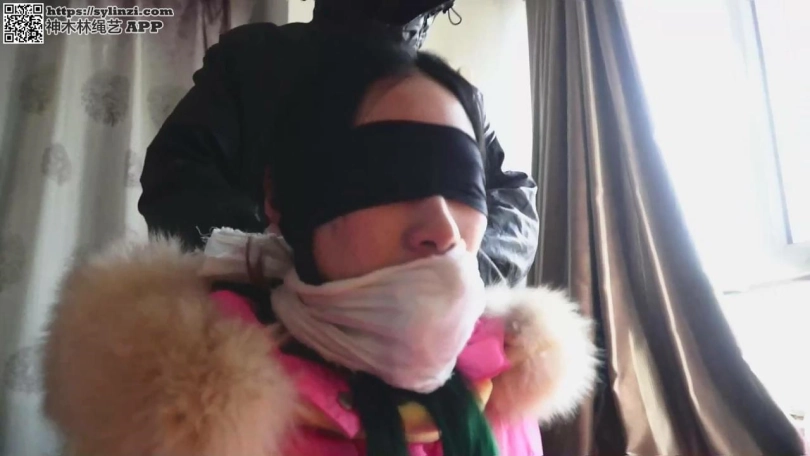 石家庄的天气已经很冷了,路上行人很少。这时顺着大路走来一个人,这个人身材苗条,穿着厚厚的红色女式羽绒服,带着羽绒手套,羽绒服上配套的连体包头羽绒帽把她的脑袋、脖子、耳朵和两侧的脸紧紧的包裹住,只露出一片很窄的脸。而且只露出的那片很窄的脸上还戴着一只白色的大口罩,把鼻子和嘴紧紧的遮盖住,只露出明亮的大眼睛和秀丽的眉毛以及少许光洁的前额。在脖子的羽绒衣外面还围着一条纱巾,以防止寒风灌进脖子里。   这是这个城市冬天女孩们最普通的装束。从这个女孩那明亮的大眼睛和秀丽的眉毛来看,这一定是个很漂亮的女孩。   她叫冬岚,是逍遥仙境养生会所的当家花旦,是个有原则的姑娘,虽说在会所工作,但绝对不出卖自己的灵魂。现在她正走在从单位到她租的房子的路上。   路很滑,她小心翼翼的走着,一边想:“女孩子长的太漂亮可真不是一件好事,老是有人纠缠和骚扰,害的我天天戴着口罩,裹得严严实实。幸亏这个城市的冬天特别长,特别 冷,而且春天和秋天还有沙尘暴和刮大风,所以我在公共场合不戴口罩露出脸孔的机会不多。其实戴着口罩的感觉挺好的,柔软的纱布罩着嘴巴、鼻子和大半个脸的感觉真好呀,闻 着纱布的气味,呼吸着经过过滤的空气,又舒服又安全。我还真喜欢这样呢。”   想着想着就不知不觉的到了所租房间的那栋居民楼下。冬岚进了一个单元开始上楼,边走边把羽绒帽推下脑袋,让它挂在后背,然后脱下手套,摘下口罩,放进口袋中。这时原 来窝在羽绒帽里的长发掉下,披在背后,与她略施淡妆的脸配合到一起,使她更加楚楚动人!   冬岚上到最高层,来到房前,正要拿钥匙开门,突然有一个人从后面扑上来。冬岚还没有反应过来,张着嘴正要叫,一大团干净的白棉布已经迅速的塞进了她的嘴里,而且深入 到口腔深处,压着舌头,把嘴给堵了个严严实实。紧接着双手被扭到背后反绑起来,眼睛也被黑布紧紧的蒙上了。   冬岚拼命的挣扎,一边“呜呜”的叫着,一边想把嘴里的棉布给吐出来,但是嘴被堵得很严,舌头被压制,根本使不上力。这时,后面的人用一条很宽的布带紧紧的蒙在冬岚那 张开着的还露出满满一截棉布的嘴巴上,在她的脑后用力的绑紧,这下冬岚可没有办法了!紧接着冬岚的双手被牢牢地捆在身体上,不能移动,脚也被紧紧的绑住。冬岚又气又急, 嘴堵得太严,根本发不出一点声音,她想:“这是什么人?他要干什么?我可怎么办呀?”想着,泪水就流了出来,把蒙眼布都打湿了。   冬岚感觉自己被推进屋子。捆到了一把椅子上。冬岚不断的摇头,想要那人解下蒙眼布和蒙嘴布,再掏出嘴里塞着的棉布。那棉布早已被她的唾液所浸湿,而且还打湿了那块蒙 嘴布。   终于,蒙嘴布被解开了,但是冬岚仍被蒙着眼,塞着嘴,反绑在椅子上。那人端详着冬岚,只见她的眼睛被黑布紧紧地蒙着,嘴被棉布撑成了O型,而且有短短一截白布露出嘴 外,两腮鼓鼓着,在蒙眼黑布和堵嘴白布中间是一只端庄秀丽的小悬胆鼻子,鼻翼鼓着。那样子真是迷人! 那人笑了笑,满意的走开。冬岚什么也看不见,她觉得有个人走了出去 ,门关上了。这时冬岚拼命的想把舌头抬起来,想把嘴里的棉布团给顶出去,但是根本不行。她由于嘴巴塞得太紧、太满而两腮发酸,嘴里发干,眼睛由于被布蒙得太紧而发痛,手 脚发麻,不知不觉的就昏睡了过去。   不知道过了多长时间,冬岚被人推醒。一个男人用装出的假声音说:“你一定饿了吧?我来喂你食物。掏出你嘴里的布后,不要出声,否则我割了你的舌头。明白吗?”   冬岚“呜呜”的点着头。   那人一只手托着冬岚的脸,另一只手用力的拔出布团,那团布早已湿透,被扔掉了。冬岚蠕动了几下嘴,运动着麻木的舌头。这时,一根吸管塞到嘴中。冬岚大口的吮吸起来, 原来是牛奶。吸完后,她又吃了几块牛肉。   一切完毕后,冬岚问:“你是谁?为什么把我绑架到这里来?”   那人不语,伸手用力捏住冬岚的两腮,冬岚的嘴巴不由得张大了,冬岚知道自己的嘴又要失去自由了。她叫道:“请把我的蒙眼布摘来,蒙得太紧我的眼睛快瞎了。”   那人说:“可以,但得先堵着你的嘴。”说着,一大团棉花填进了冬岚的嘴里,冬岚用舌尖顶着想把棉花吐出来,那人一手按住她的嘴,另一只手把又一大团棉花塞进冬岚的小 嘴里。   冬岚的嘴被棉花塞满,而且还有很多棉花挂在嘴外。那人取出高性能胶布,把冬岚那被棉花塞得满满、堵得严严的小嘴牢牢的粘贴起来。   冬岚无助的发出微弱的“呜呜”声,鼻子急促的呼吸着,嘴里的棉花使嘴上的胶布凸出一团,而且上下微弱的起伏。眼被蒙,嘴被严实的密封,冬岚又陷入了恐慌和绝望中。   过了很长一段时间,蒙眼黑布被摘掉,冬岚的眼睛舒服多了,但是还难以适应那强烈的光线,她赶紧闭着眼,过了很长一段时间才适应。睁开眼后,冬岚发现自己在一间房间里 ,房间的窗户被厚厚的黑窗帘遮着,房间里除了捆她的椅子外还有一张床。房门紧紧的关着,门口站着一个蒙面男子(男子无需露脸,也尽量不要拍正面)。   冬岚很纳闷:“这人怎么穿成这样?难道他不想让我看见他的脸吗?”冬岚很想问问,但是嘴被堵着,根本发不出声音。   那人凶狠的说:“美女,你给我老老实实的,不要耍什么花招,否则我用刀划花你的脸。我现在给你松绑,让你到床上去睡觉。”   冬岚“唔唔”的点点头,但同时在想:“尽管这人说